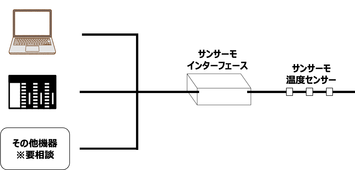 サンサーモで取得した情報の閲覧・管理は、PCで可能。加えて、PLCなどの様々な機器に接続も可能。